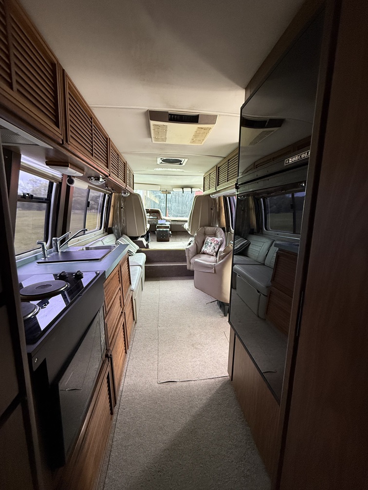 I purchased this from a lovely family in Ohio who owned it for 15 years but my family circumstances have changed so am selling. Rebuilt and running 455 cu in Oldsmobile engine. Rebuilt and upgraded transmission. Alcoa aluminum wheels. Self contained fridge 120VAC / propane. Stove / oven / furnace / roof air con. 30gall fresh water tank. 30gall holding tank. 50gall gas tank. 50 amp/30 amp / 125 VAC RV hook-up. 6k generator. Painted Cadillac Valspar Smokey Caramel! CA registration in process with plate “Motorhm”.