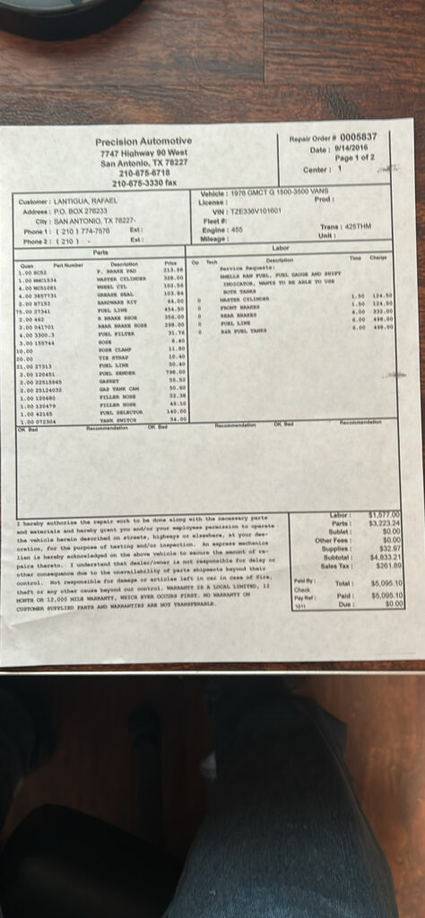 • Updated brakes,tanks flushed, new lines etc per attached invoice