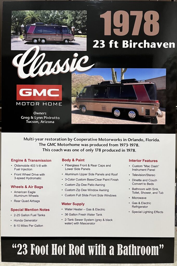 I purchased this motorhome in March of 2022 as a potential project to keep me busy in retirement. I was looking for something to do and I found this unit for sale in Yuma, AZ. Besides it being a project there were some sentimental reasons as I had worked with Mike Lathers (GMC Motor Home Designer) in Detroit on a Class 8 truck project in the mid-seventies. I flew out to Yuma with my wife and daughter and drove the GMC back home to Winston Salem, NC. A couple of hic-cups along the way but not a bad trip.  I have decided to sell the GMC as I own one other RV and do not need 2.  Also at my age it is a challenge doing additional work.